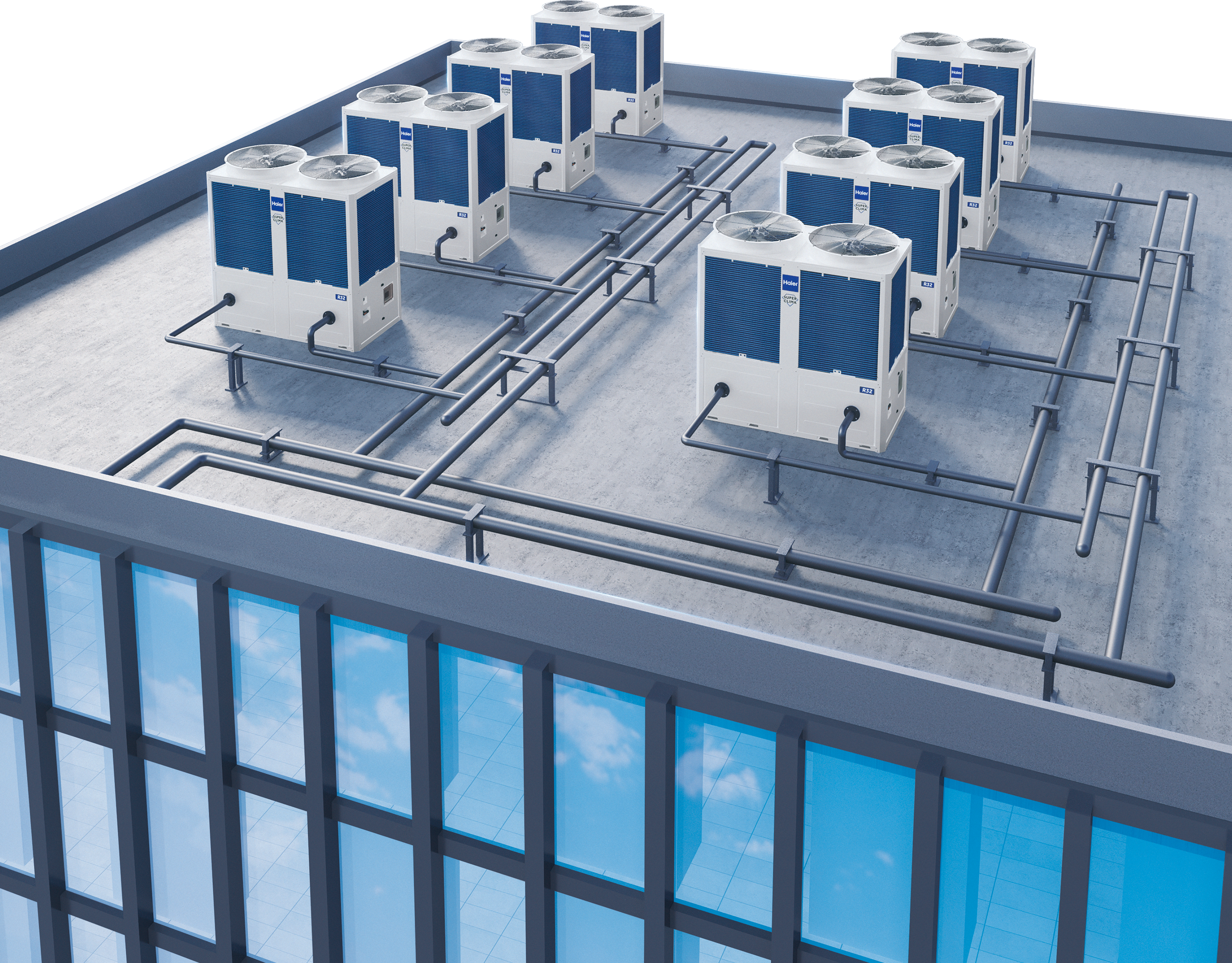 La gama de Enfriadoras Modulares Haier consta de 3 modelos de distinta potencia para sus demandas de refrigeración y calefacción con tecnología de compresor Scroll Inverter.