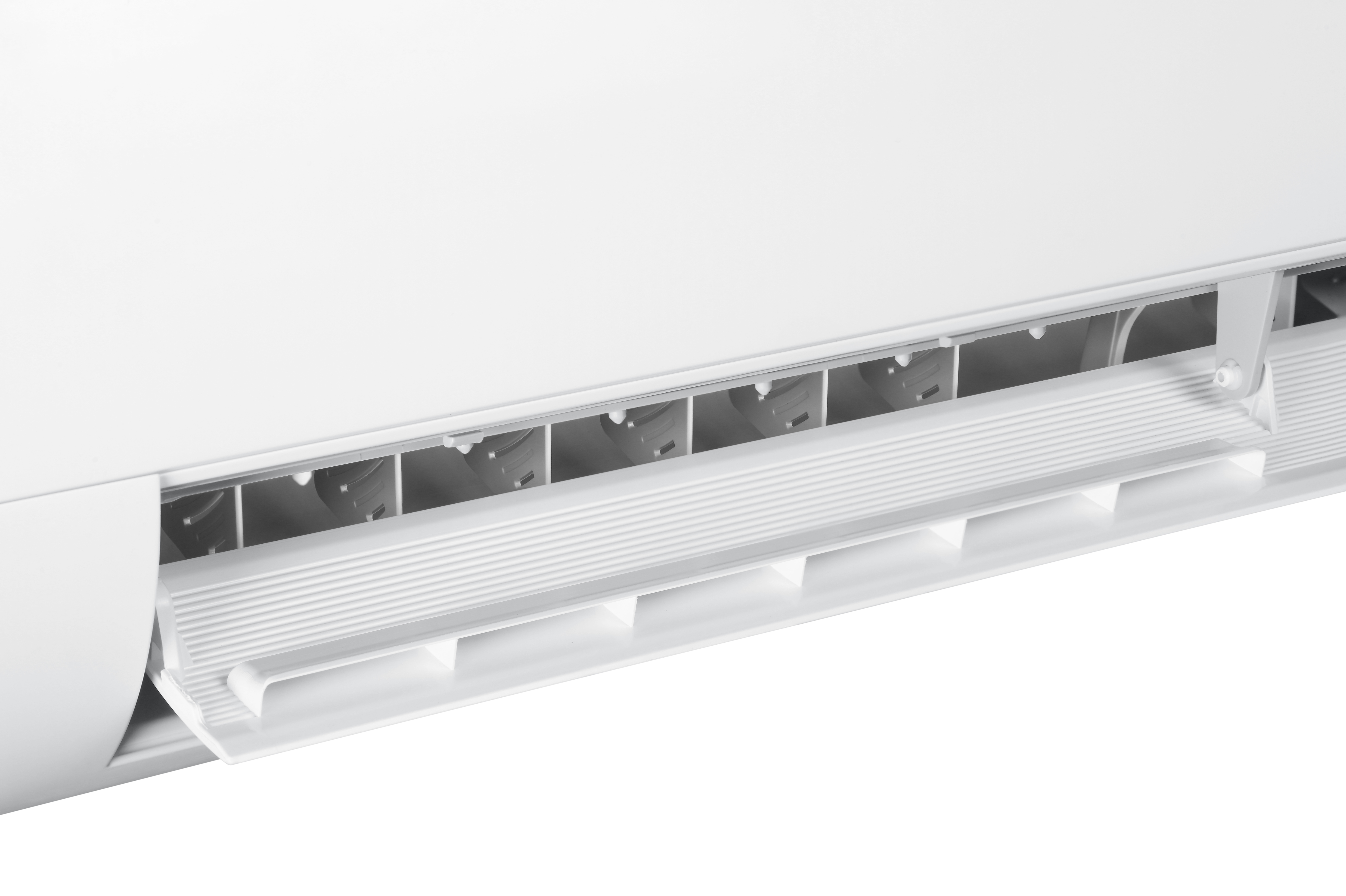 El diseño aerodinámico especial de las rejillas permite que el flujo de aire llegue más lejos y con más potencia, al mismo tiempo que mantiene un bajo nivel de ruido y un consumo de energía reducido, con un flujo de aire más suave.