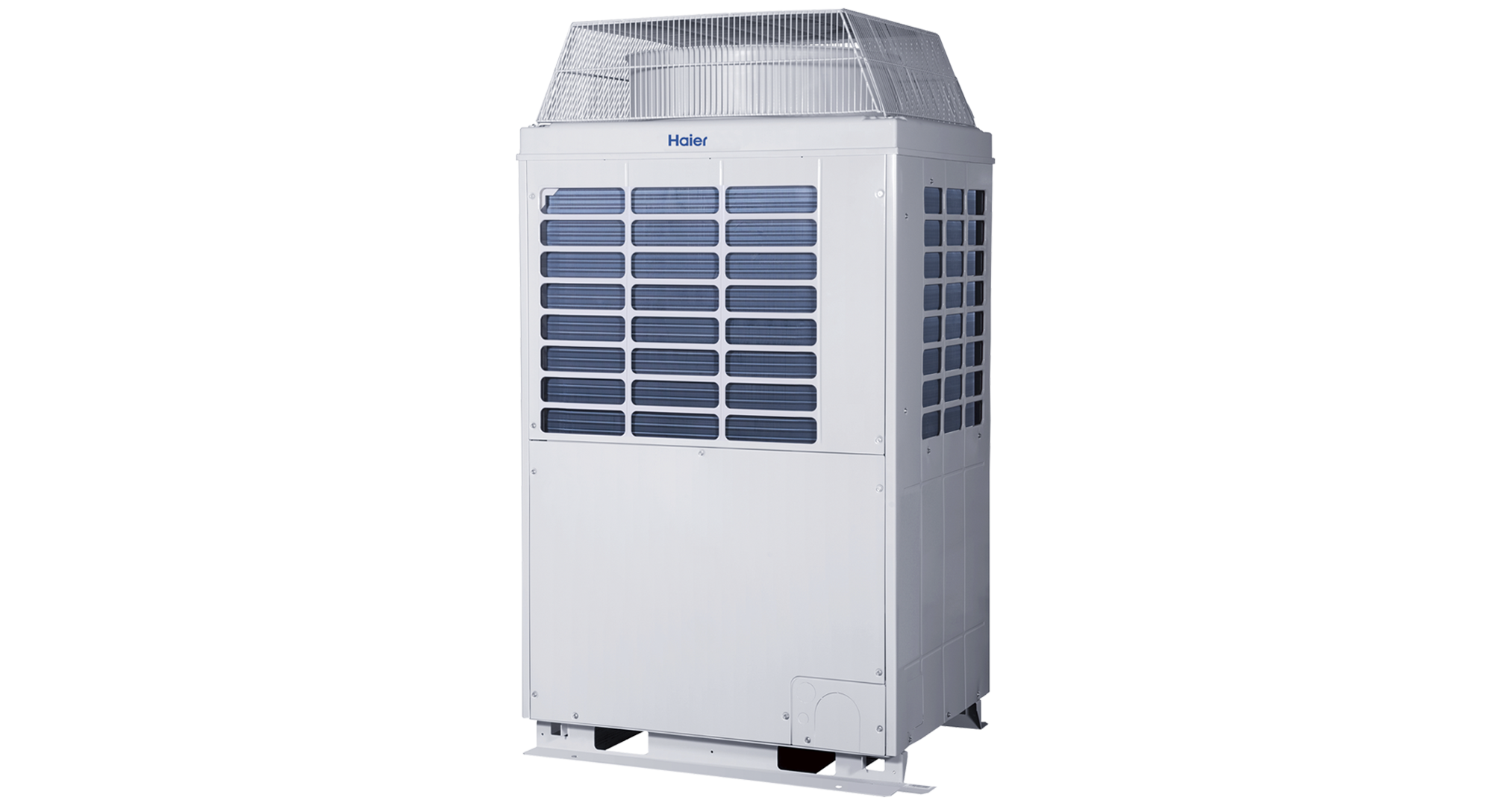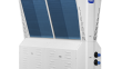 El sistema de la Enfriadora Modular consta de 4 módulos de bombas de calor de diferente potencia equipados con compresores en tecnología de «multidesplazamiento». Estos módulos están pensados y diseñados para instalaciones individuales "conectables" y para diversas configuraciones modulares. Se pueden acoplar hasta 16 módulos de capacidad similar o distinta bajo un solo control para alcanzar los 2080 kW de capacidad.