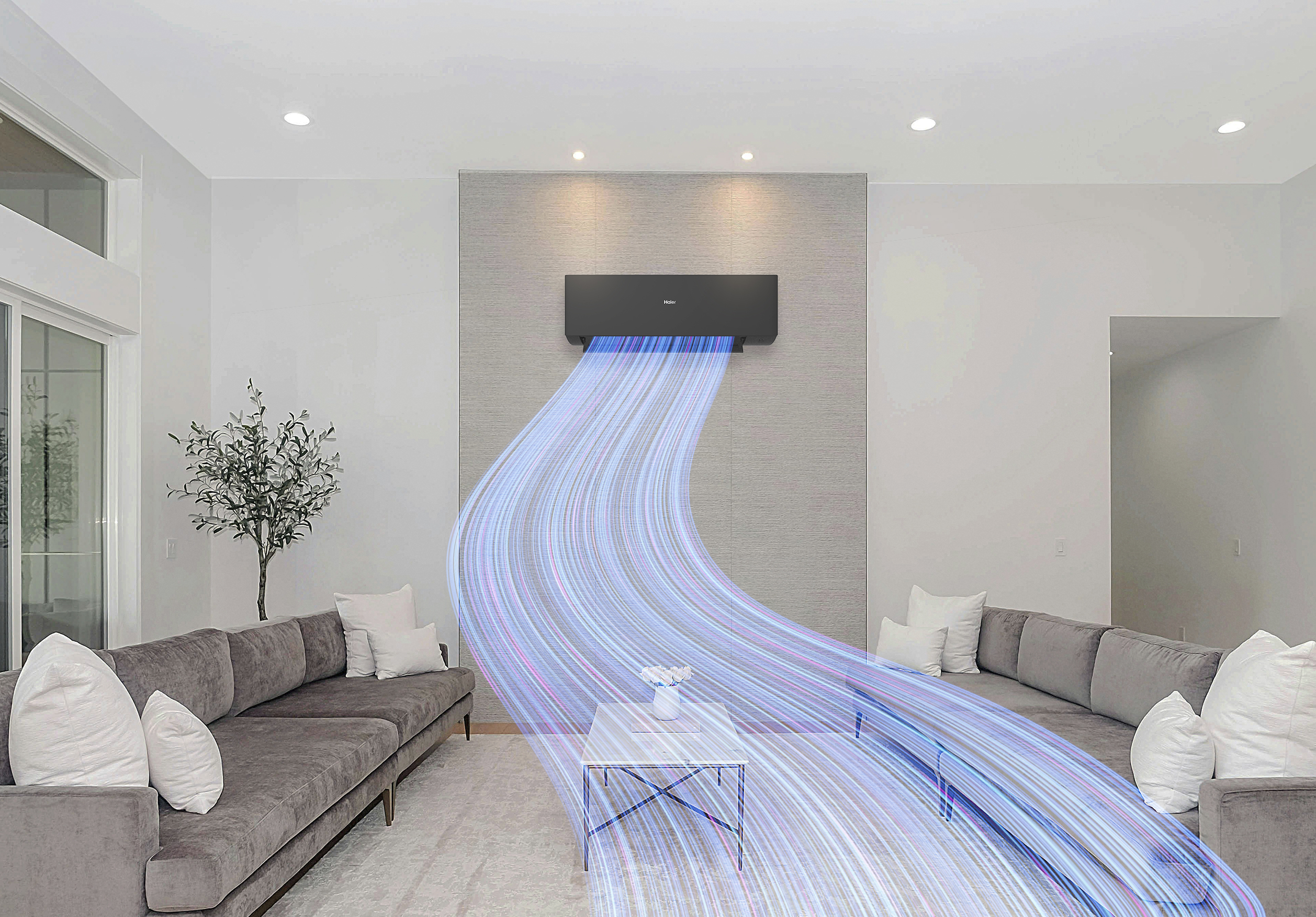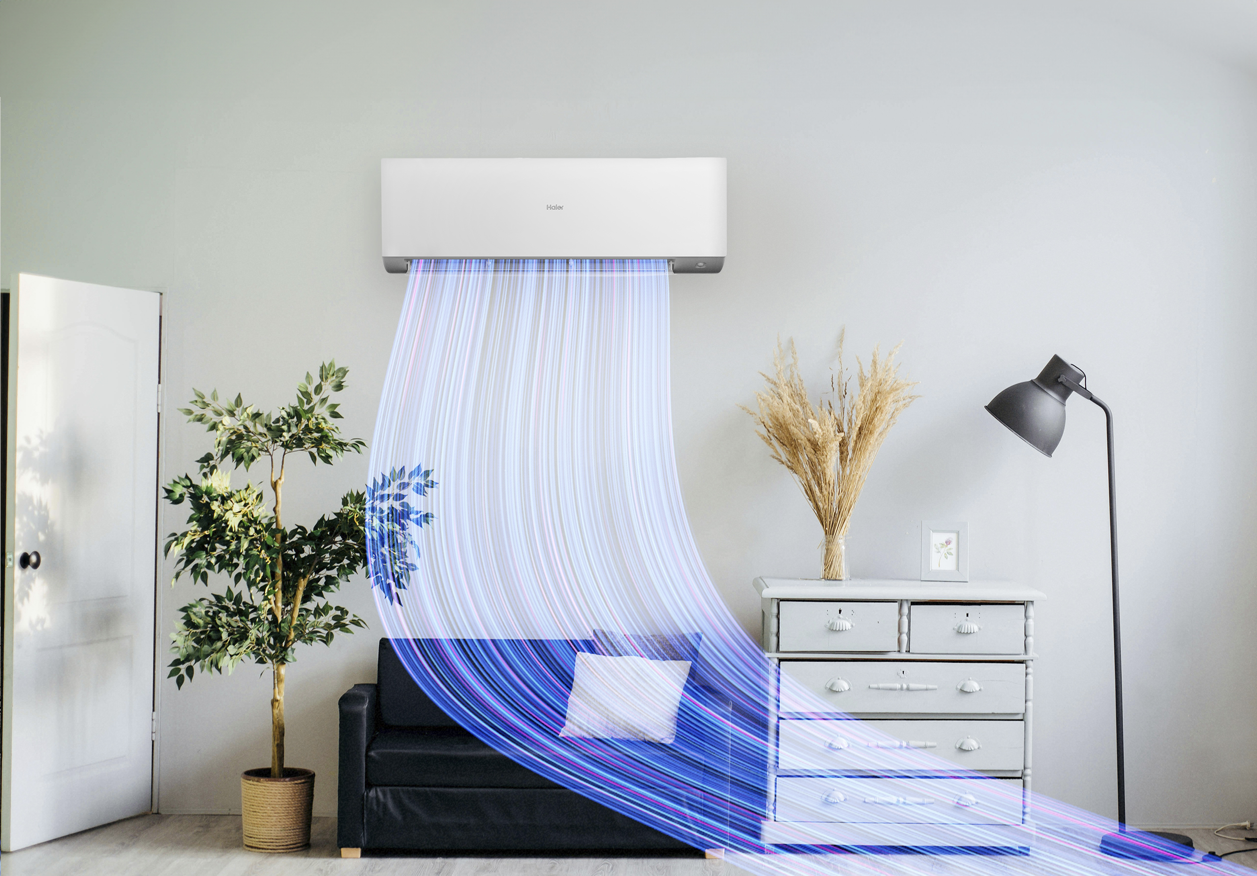 El diseño aerodinámico especial de las rejillas permite que el flujo de aire llegue más lejos y con más potencia, al mismo tiempo que mantiene un bajo nivel de ruido y un consumo de energía reducido, con un flujo de aire más suave.